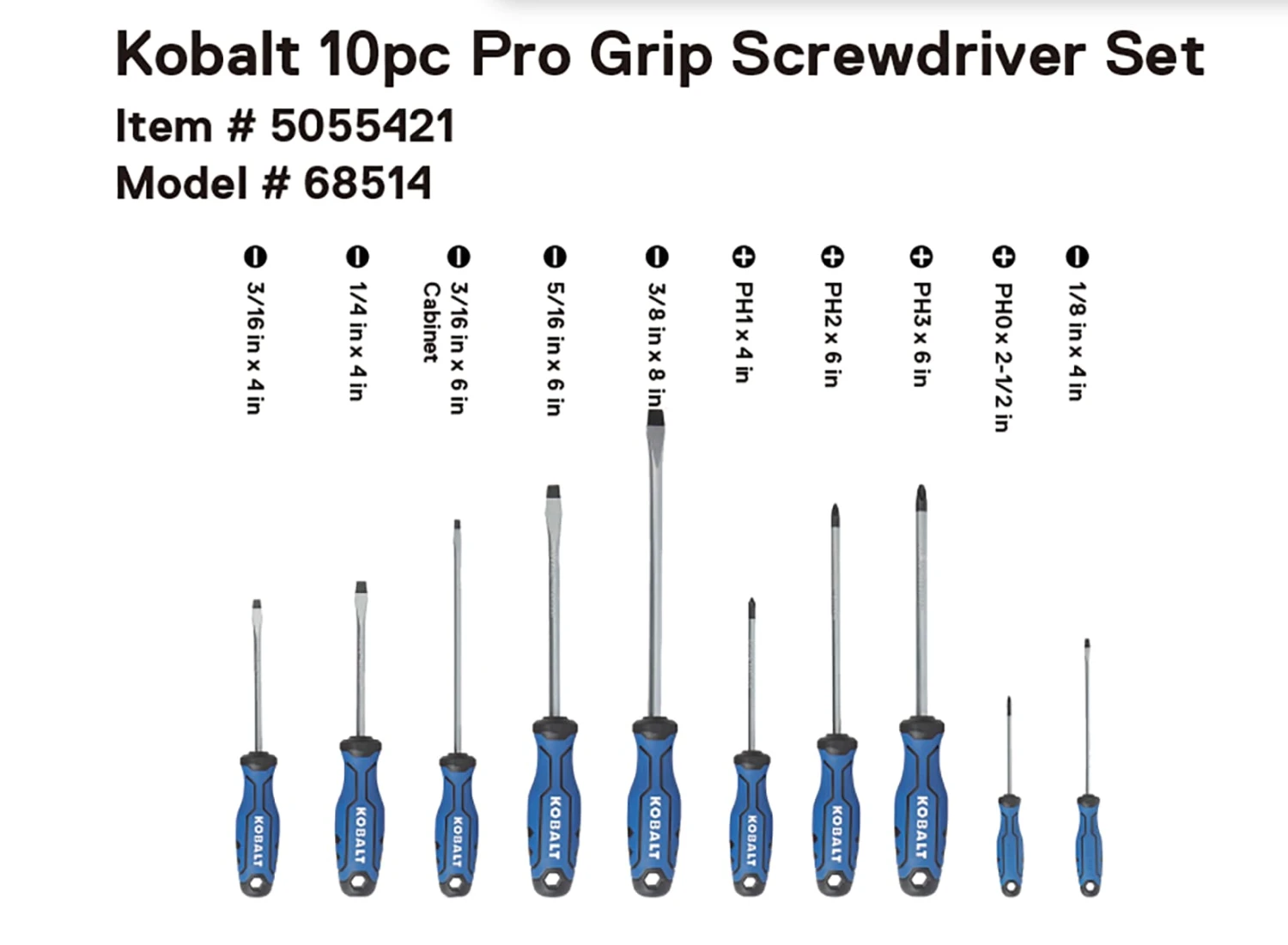 Kobalt 10 -Piece 6-in Magnetic Screwdriver Set