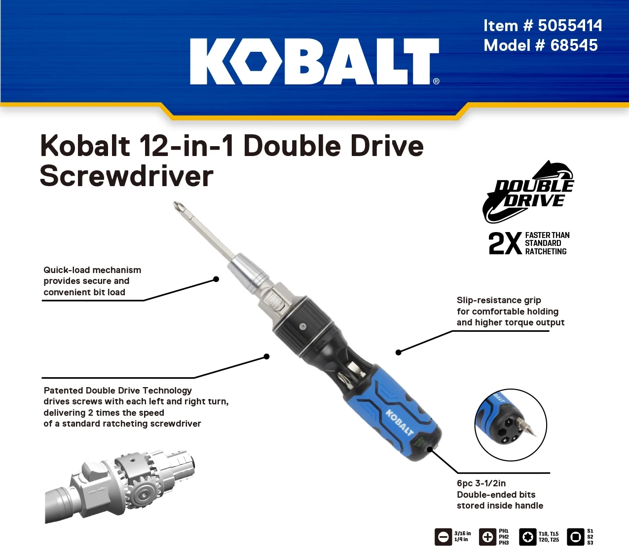 Kobalt 12-in-1 Double Drive 7 -Piece 3-1/2-in Ratcheting Multi-Bit Combination Tip Screwdriver Set