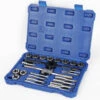 Cut new material or chase lightly damaged threads and recover old screws, rusty nuts and bolts, and spark plugs. Complete in a tool box tray case.