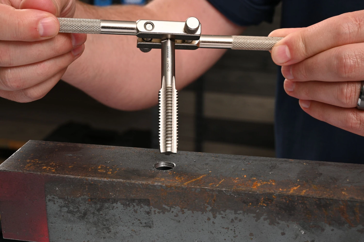 Tap size and recommended drill bit size are laser-etched on each tool for easy identification