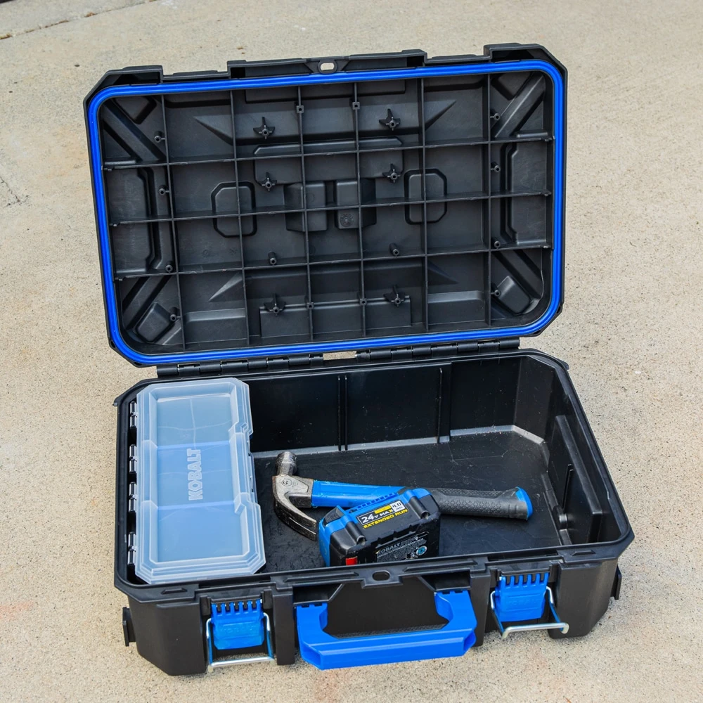 • A Kobalt CASESTACK small storage box can be used to carry your batteries and charger, or be attached to an existing CASESTACK unit