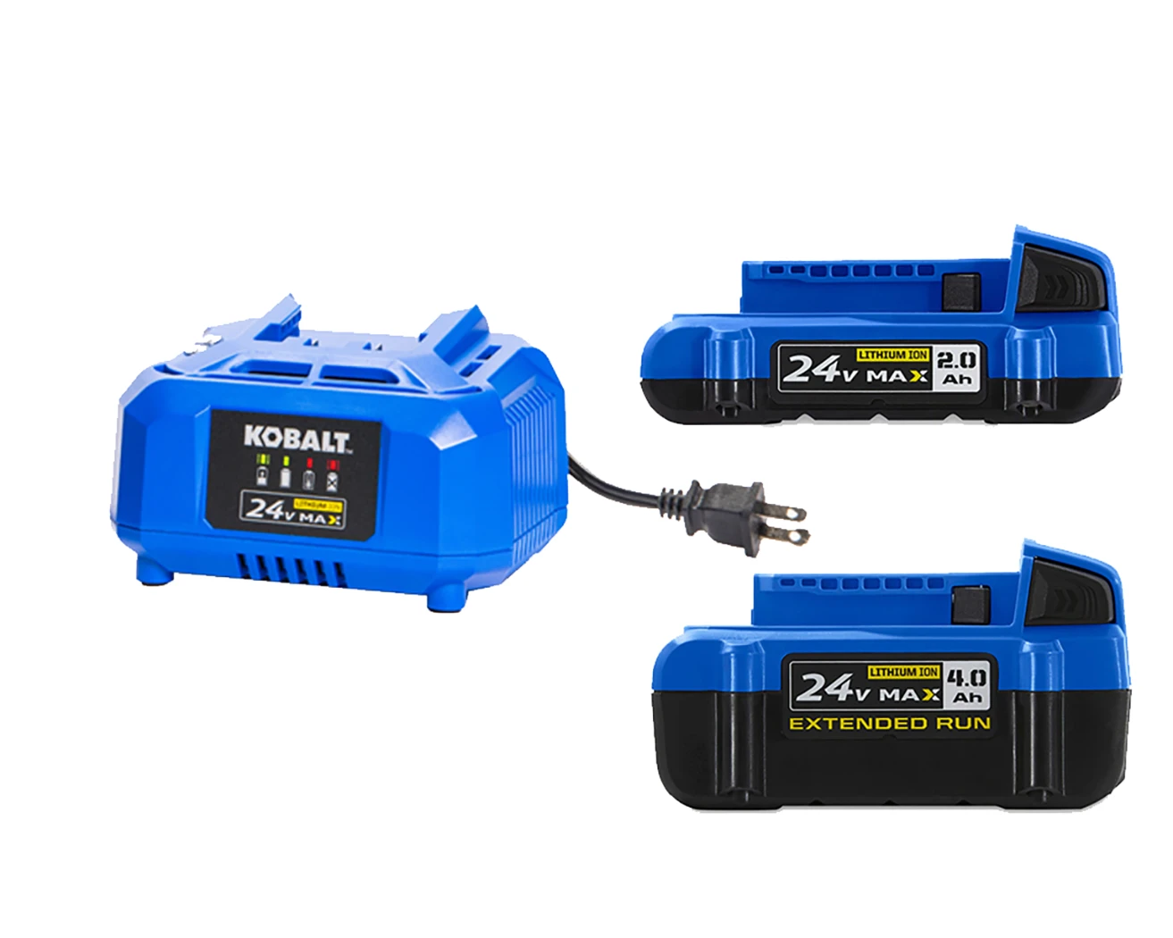 • Both batteries and the charger are compatible with all Kobalt 24-volt max cordless power tools (sold separately)