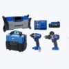 Kobalt 24-volt max cordless combo kit includes: 1/2-in drill/driver, 1/4-in impact driver, 5-in sander, 4-1/2-in circular saw, 24-volt 4.0Ah battery, 85W charger