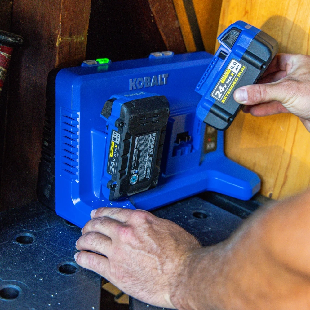 Kobalt 24-volt 2-port charger can charge up to 2 batteries at the same time