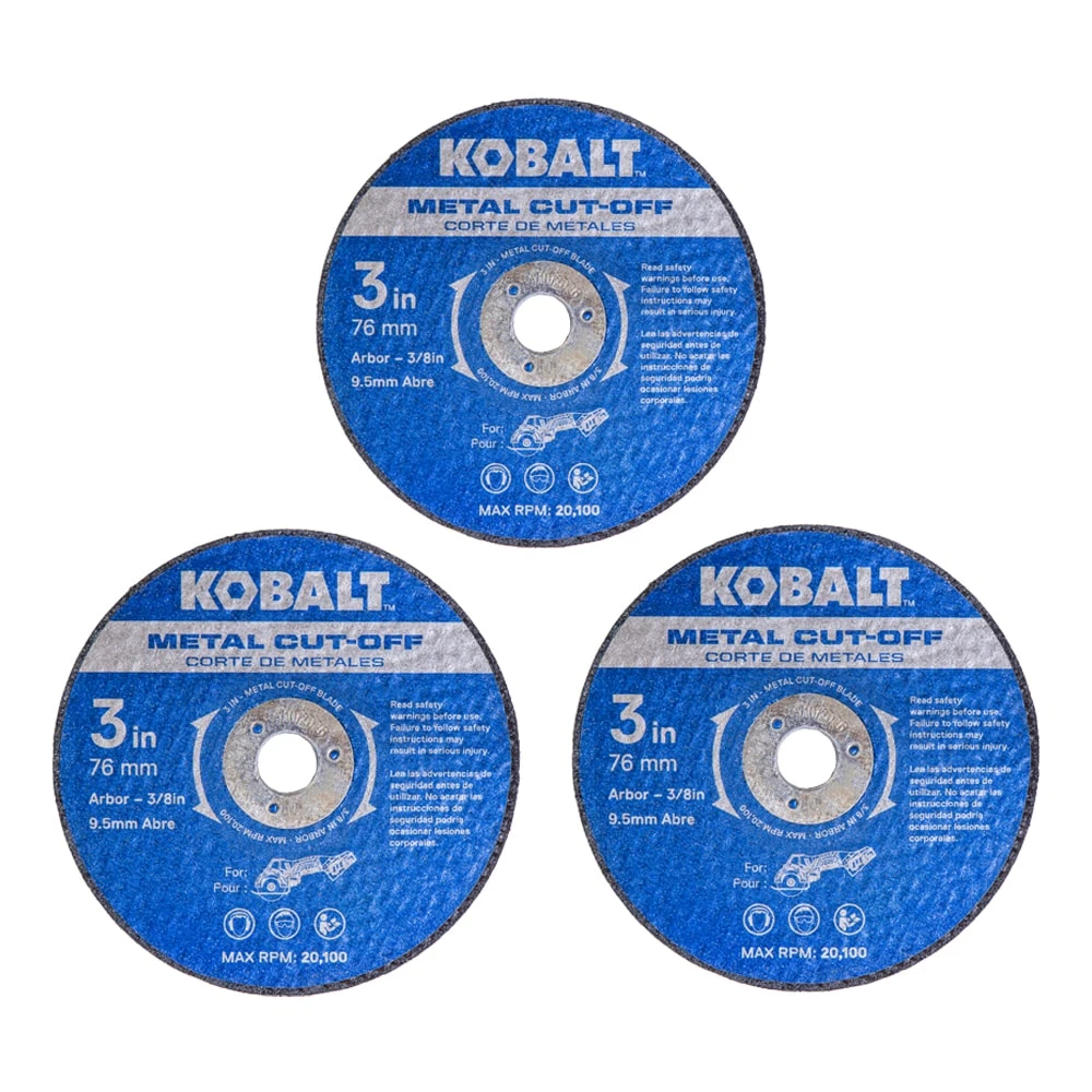 Includes (3) metal cut-off wheels with 3/8-inch arbor