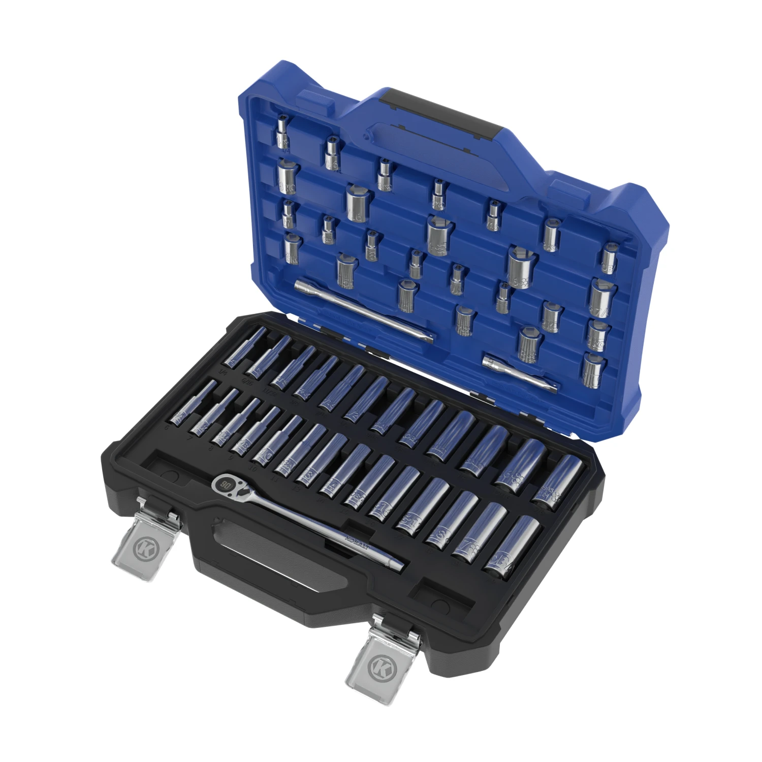 Kobalt’s dedicated 3/8-inch drive mechanic’s tool set includes a mix of fifty (50) deep and shallow, metric and SAE sockets
