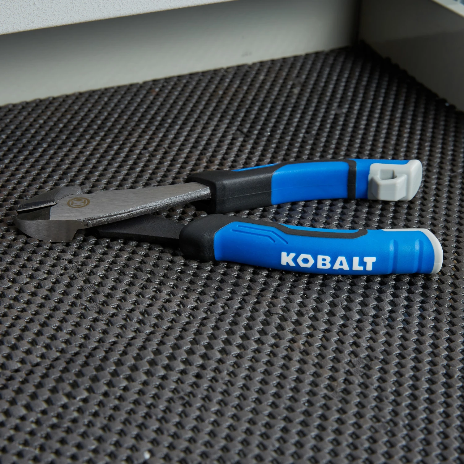 Kobalt’s 7-inch diagonal cutting plier provides high-leverage cutting for a variety of wire cutting tasks. Cutting blades are sharp, induction hardened and stay perfectly aligned with Kobalt’s smooth-action rivet. Handles have a molded-in letter identifier (D=diagonal cutting) so you can grab the right tool from your tool bag. Comfort grip and tether hole make this the perfect diagonal cutting tool for the electrical professional.
