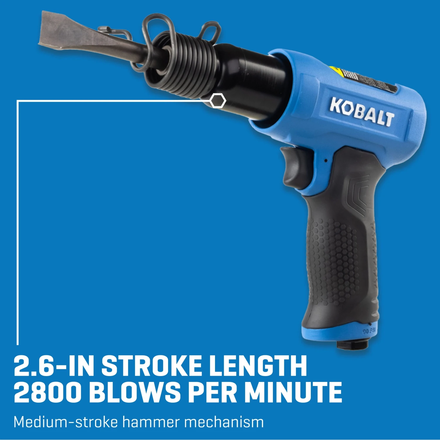 Equipped with a flat-blade chisel and a 2.6-in stroke, this air hammer is prepared for demolition tasks right out of the box