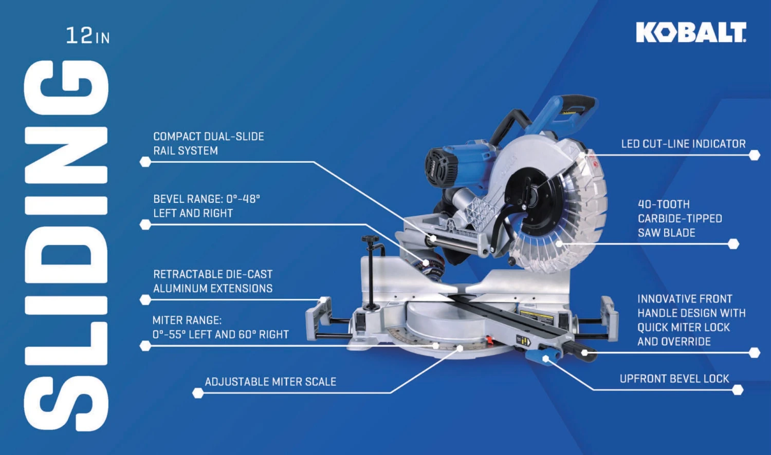 | Saw Blade Diameter | 12-in, 10-in, 7-1/4-in |
