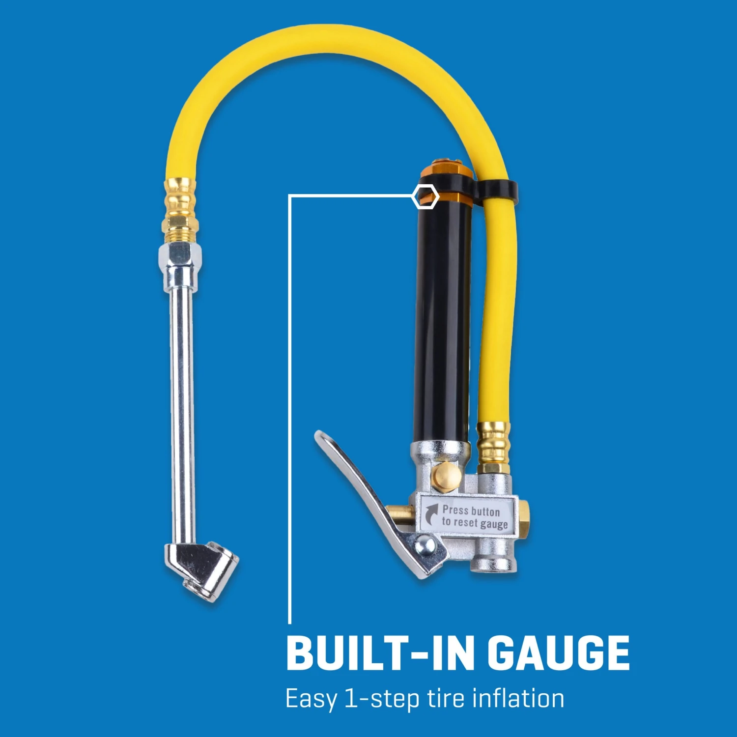 • This tool combines an inflator and built-in gauge, allowing you to inflate and monitor tire pressure in one convenient device
