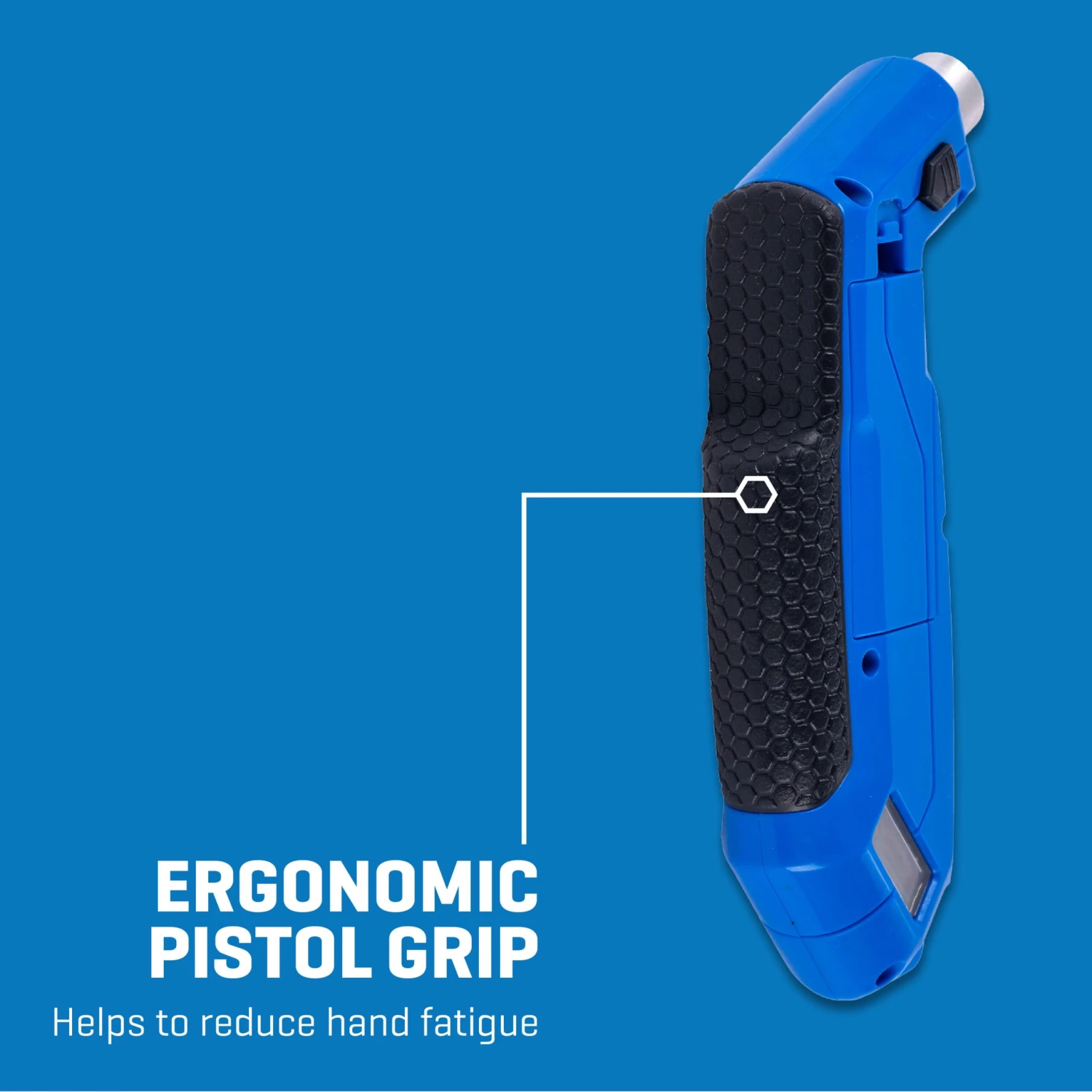 • Ergonomic pistol grip reduces hand fatigue