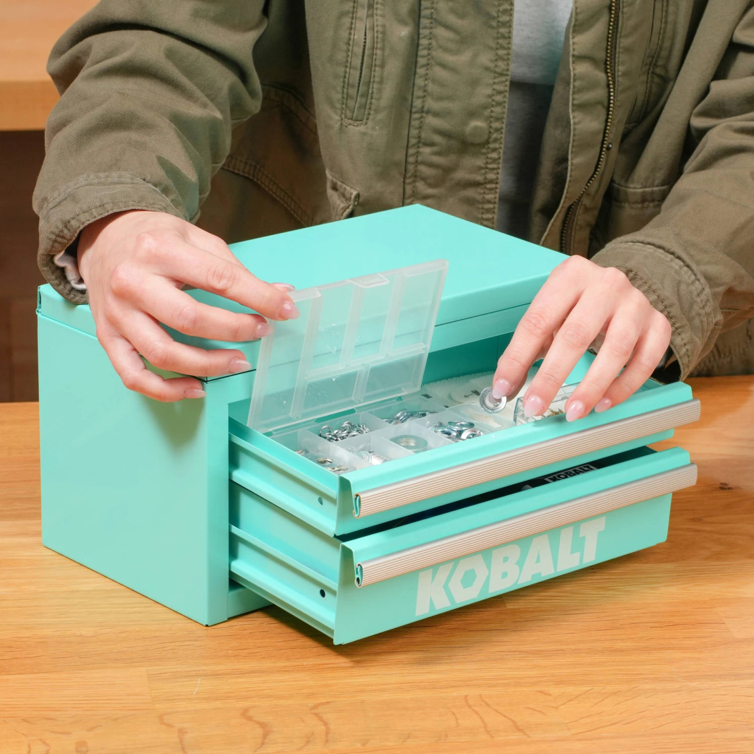 Kobalt Portable Mini Toolbox 10.83-in W X 5.91-in H X 5.91-in D 2 -Drawer Teal Steel Tool Box