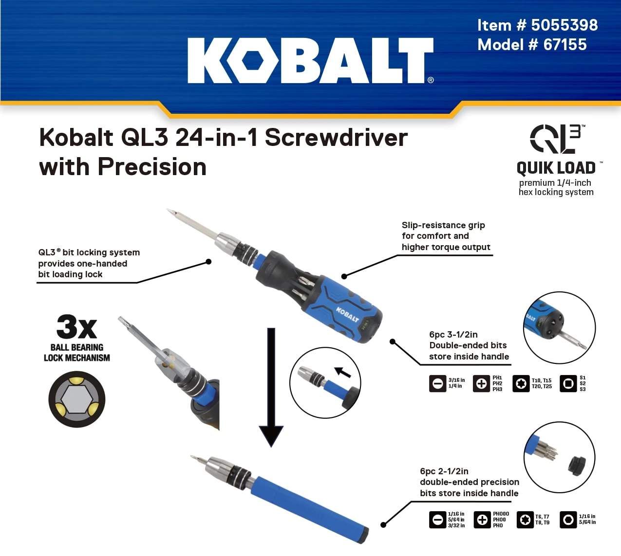 Kobalt QL3 24-in-1 Screwdriver W/Precision 14 -Piece 2-in Multi-Bit Combination Tip Screwdriver Set